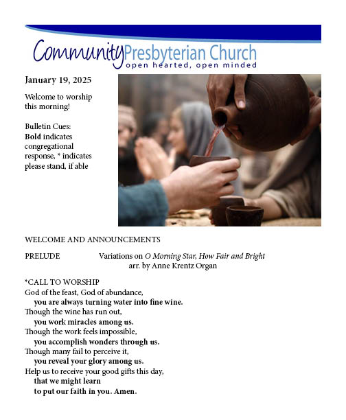 The Annual Meeting for Community Presbyterian Church is Sunday, January 26, following worship. Plan to attend as we look back on the year that has been and look forward to 2025!